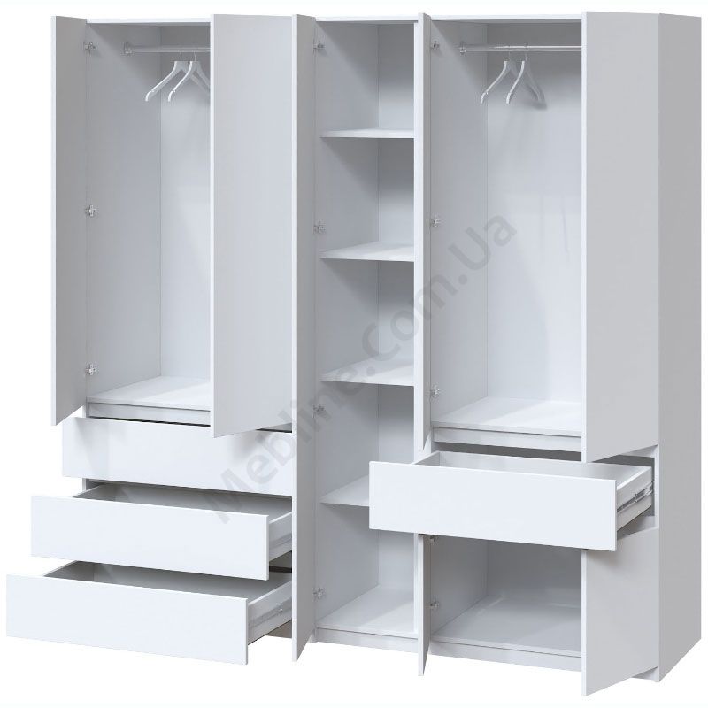 П’ятистулкова шафа з висувними шухлядами, штангами та полицями.