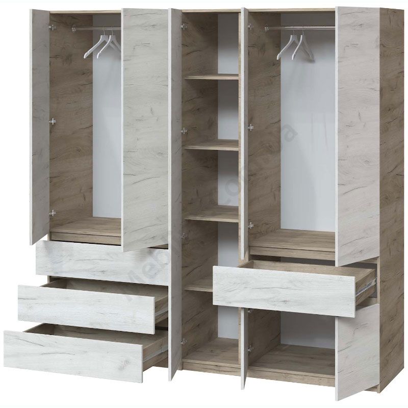 П’ятистулкова шафа з висувними шухлядами, штангами та полицями.