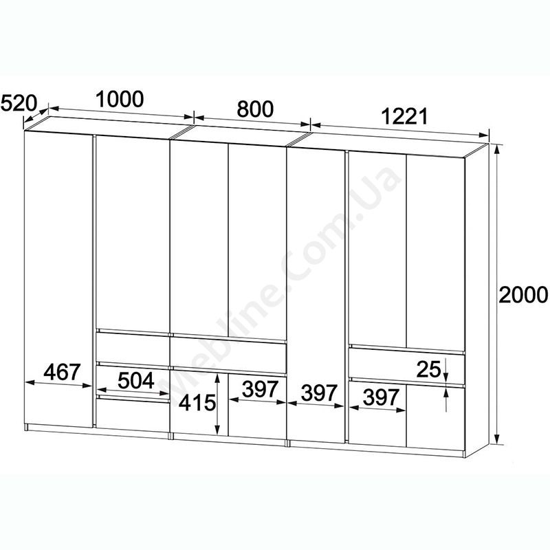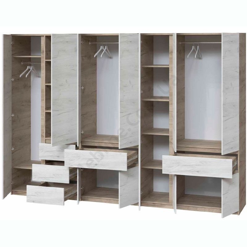 - За лівими дверцятами штанга для одягу та дві полиці.