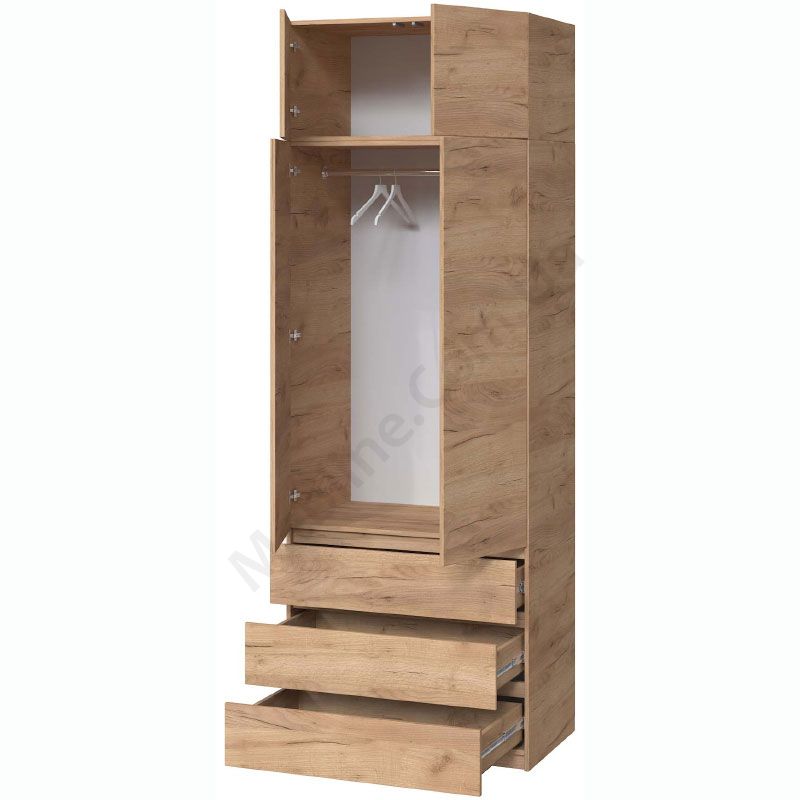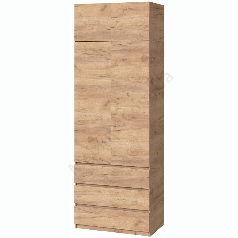 Двостулкова шафа з висувними шухлядами, антресоллю та штангою всередині.
