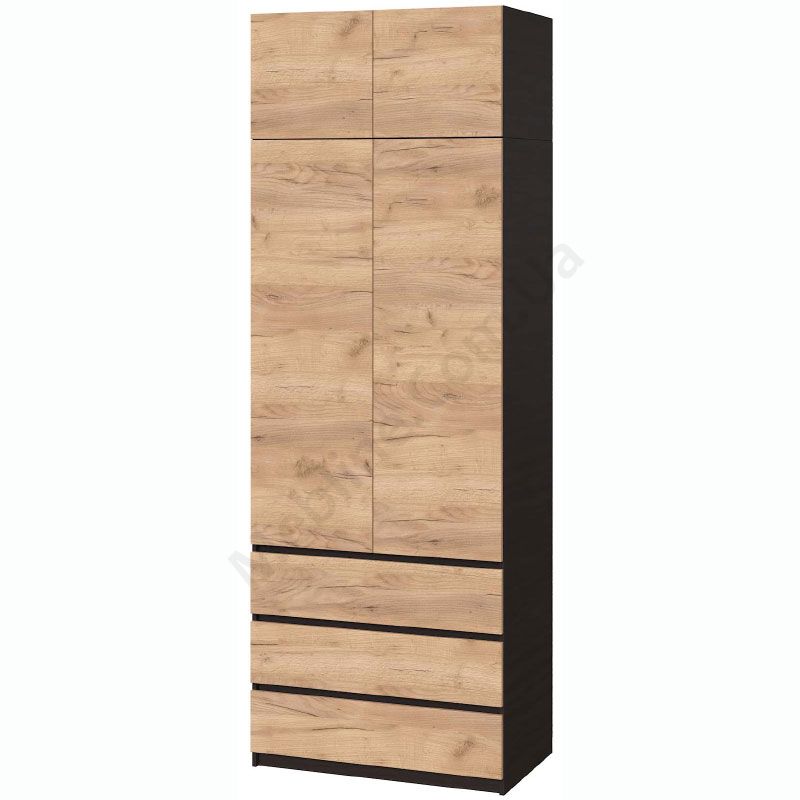Двостулкова шафа з висувними шухлядами, антресоллю та штангою всередині.