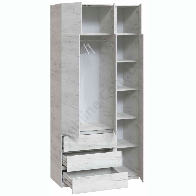 Тристулкова шафа з висувними шухлядами та антресоллю.