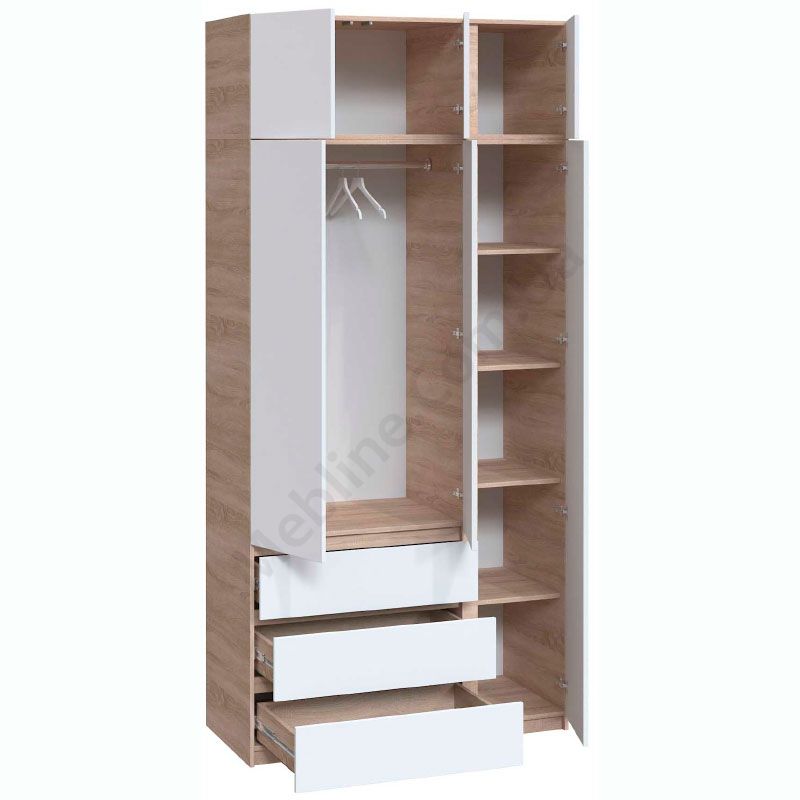 Тристулкова шафа з висувними шухлядами та антресоллю.