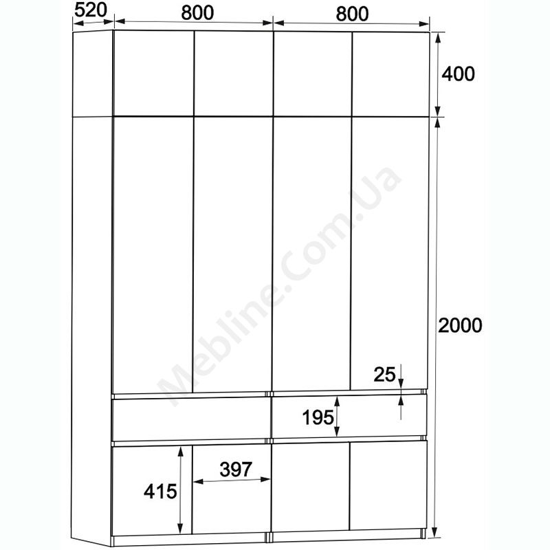 Чотиристулкова шафа з висувними шухлядами та антресоллю.