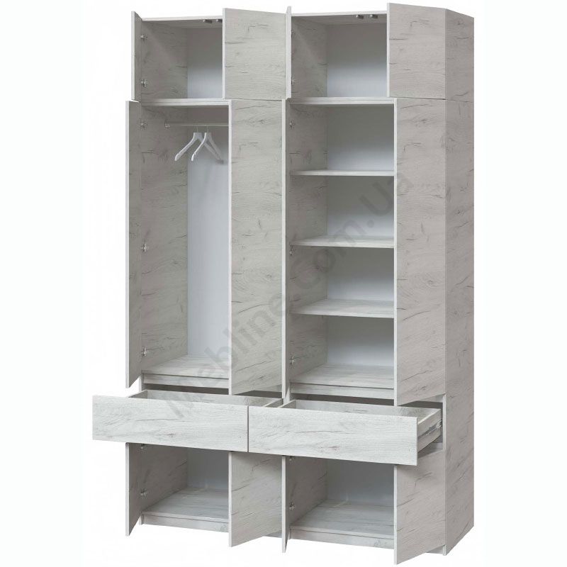 - За двома основними дверцятами штанга для одягу, за третіми, четвертими — три полиці.