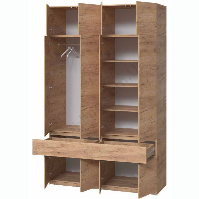 Чотиристулкова шафа з висувними шухлядами та антресоллю.