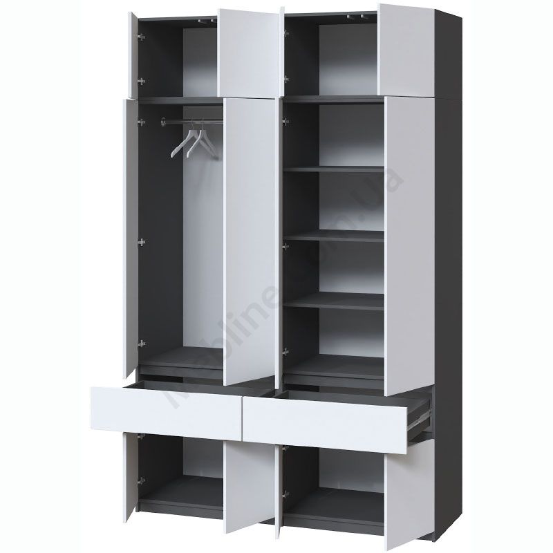У магазині Ви можете купити Шафа Брайт 1600х520х2400 з полицями Антрацит + Білий за доступною ціною та доставкою по всій Україні. Обирайте Шафа (пенал) від фабрики Мастер Форм для облаштування передпокою, вітальні, спальні в інтернет магазині меблів.