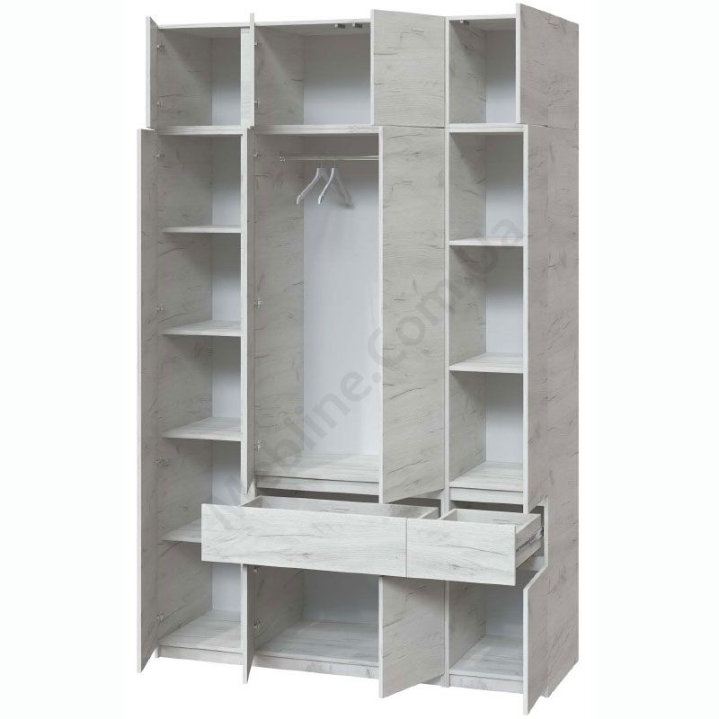 Чотиристулкова шафа з висувними шухлядами та антресоллю.
