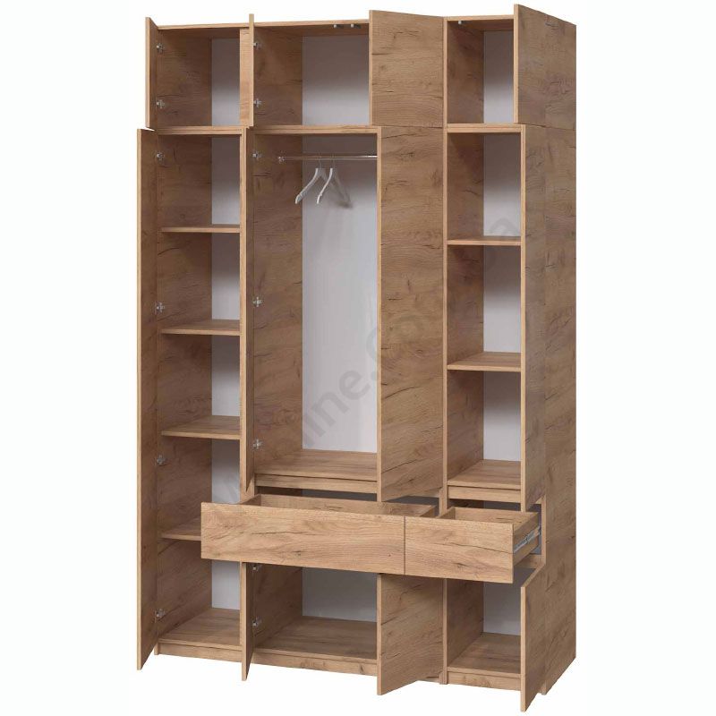 Чотиристулкова шафа з висувними шухлядами та антресоллю.