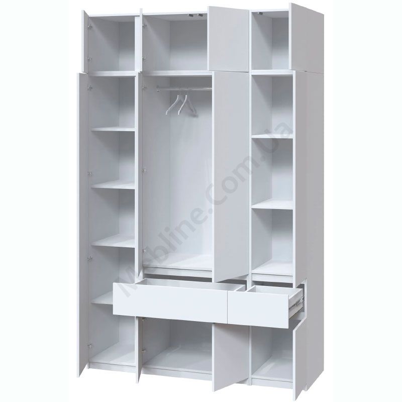 Чотиристулкова шафа з висувними шухлядами та антресоллю.