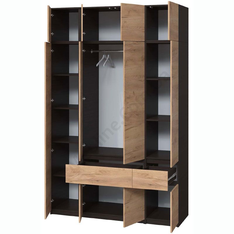 Чотиристулкова шафа з висувними шухлядами та антресоллю.