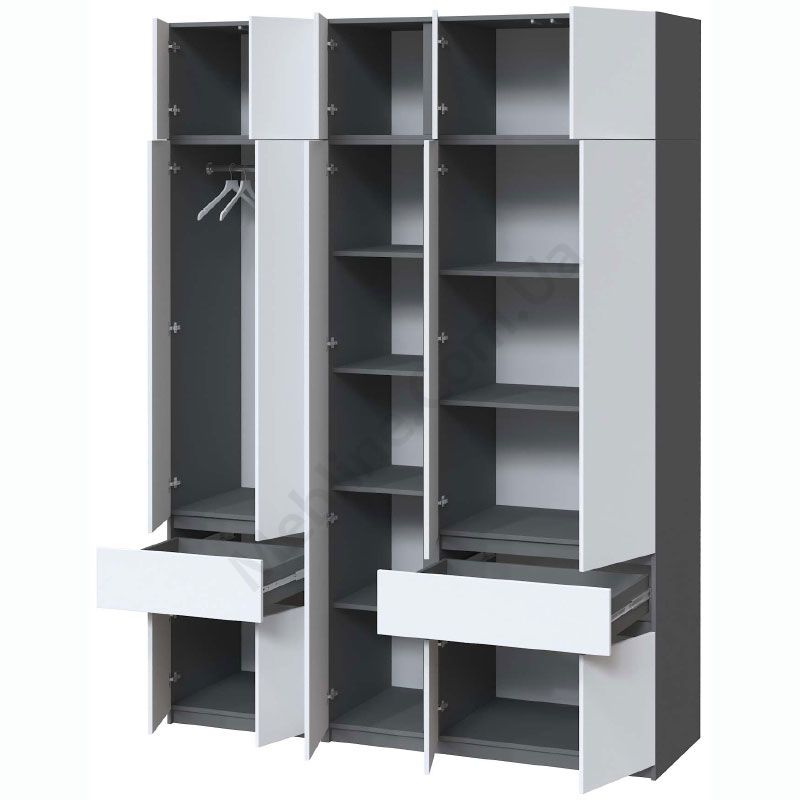 У магазині Ви можете купити Шафа Брайт 1821х520х2400 з полицями Антрацит + Білий за доступною ціною та доставкою по всій Україні. Обирайте Шафа (пенал) від фабрики Мастер Форм для облаштування передпокою, вітальні, спальні в інтернет магазині меблів.
