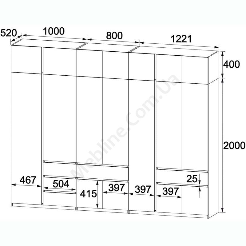 Семистулкова шафа з висувними шухлядами та антресоллю.