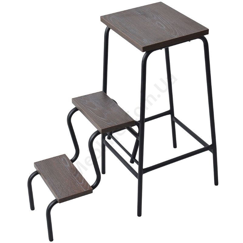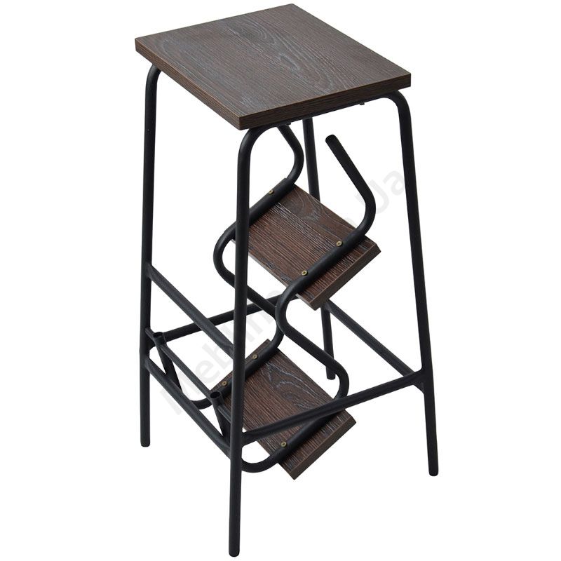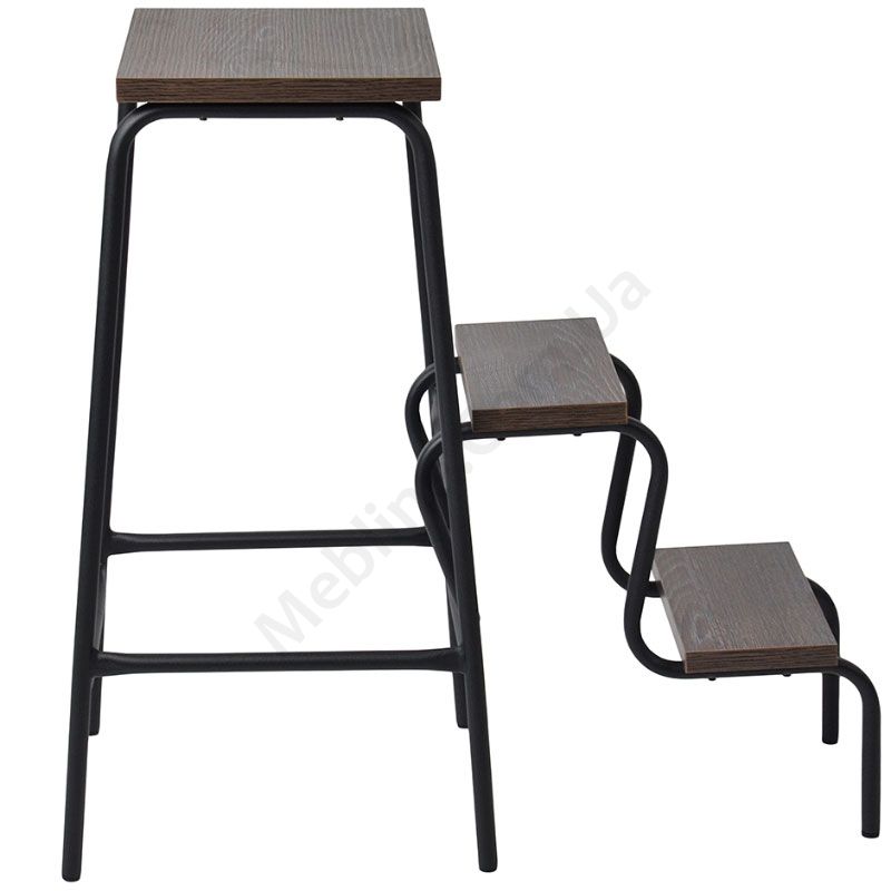 Стілець-драбинка кольору античного дуба на металевому чорному каркасі.