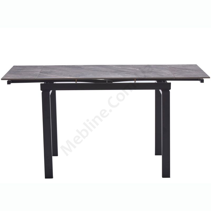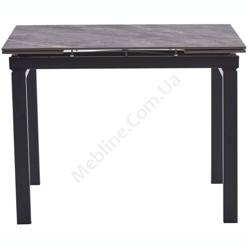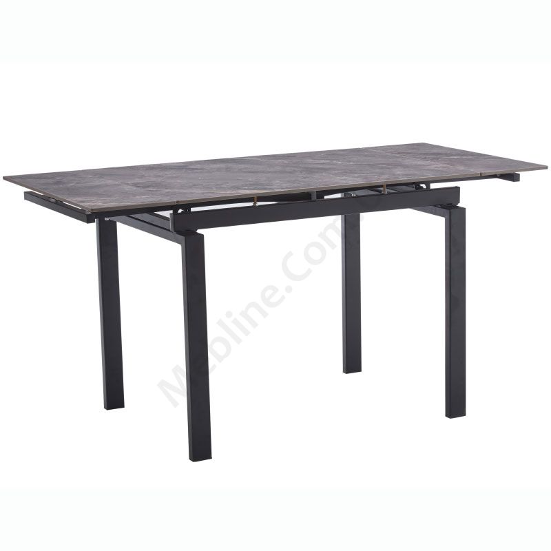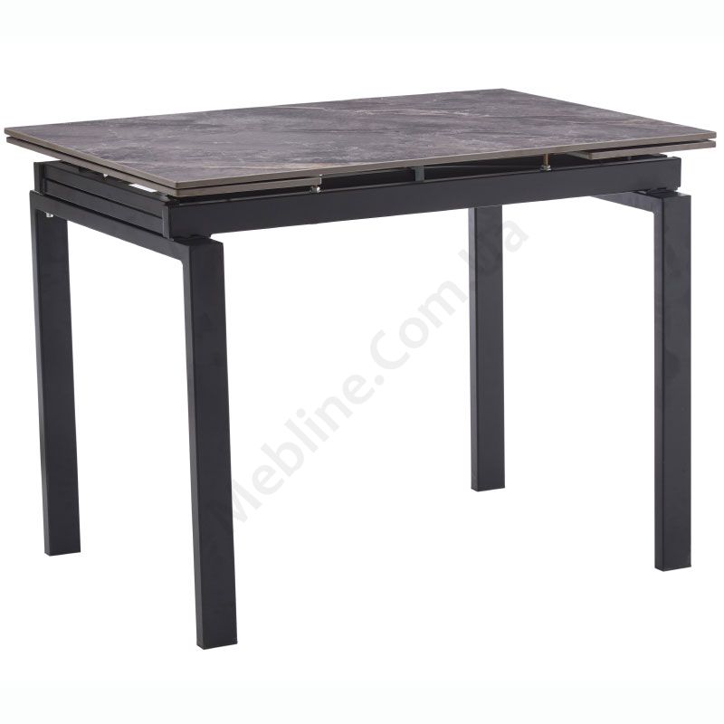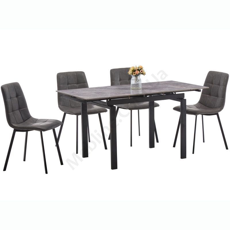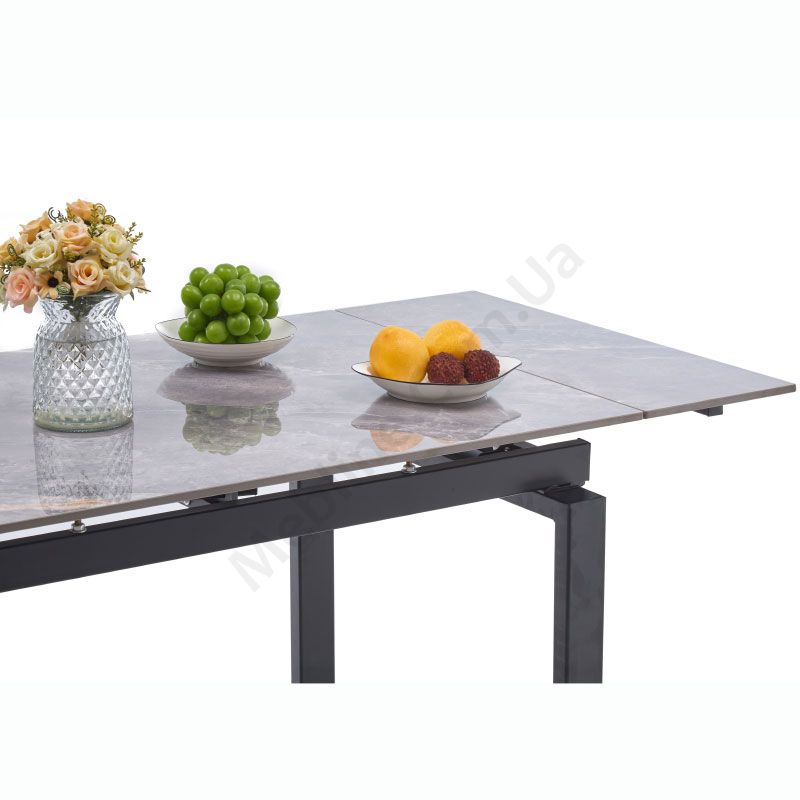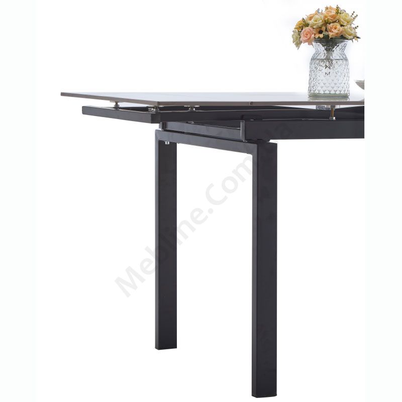 Розкладний обідній стіл на металевих ніжках з керамічною стільницею.