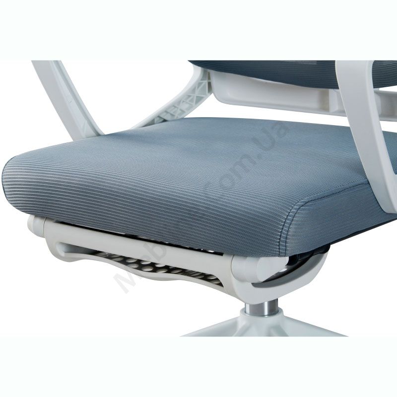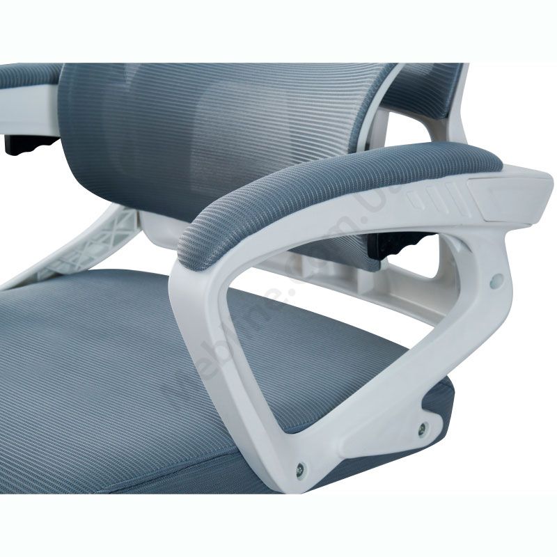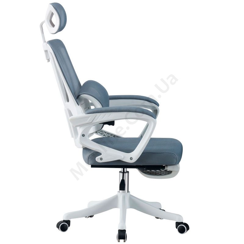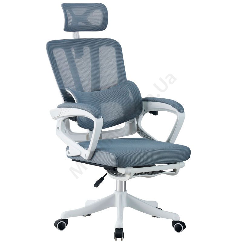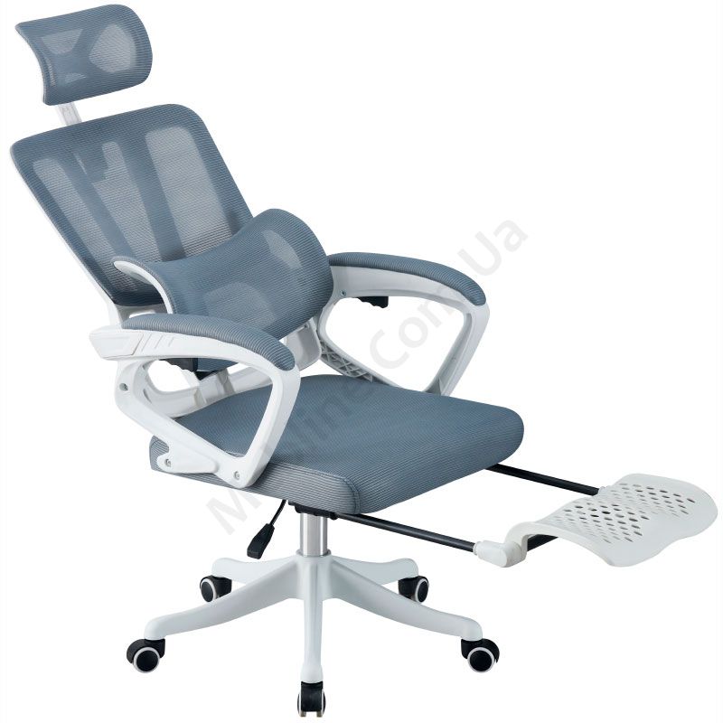 Комп’ютерне крісло на пластиковій хрестовині з сітчастою спинкою, підголівником та підставкою під ноги.