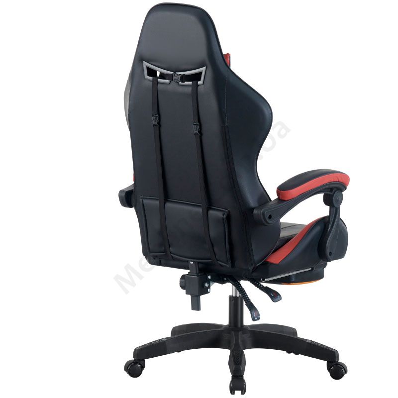 Комп’ютерне геймерське крісло з м’якими підлокітниками та підставкою для ніг.