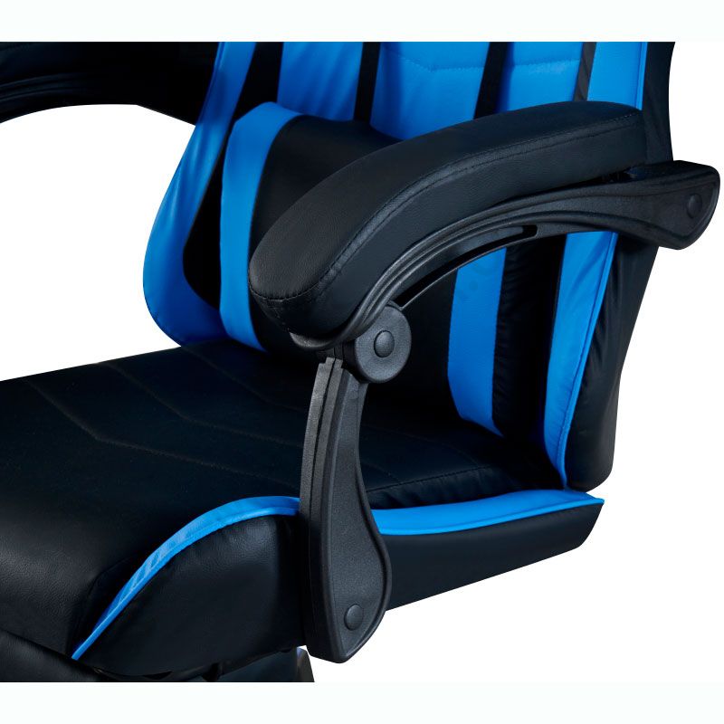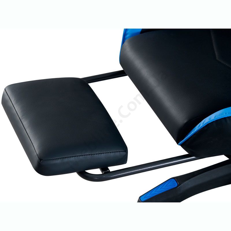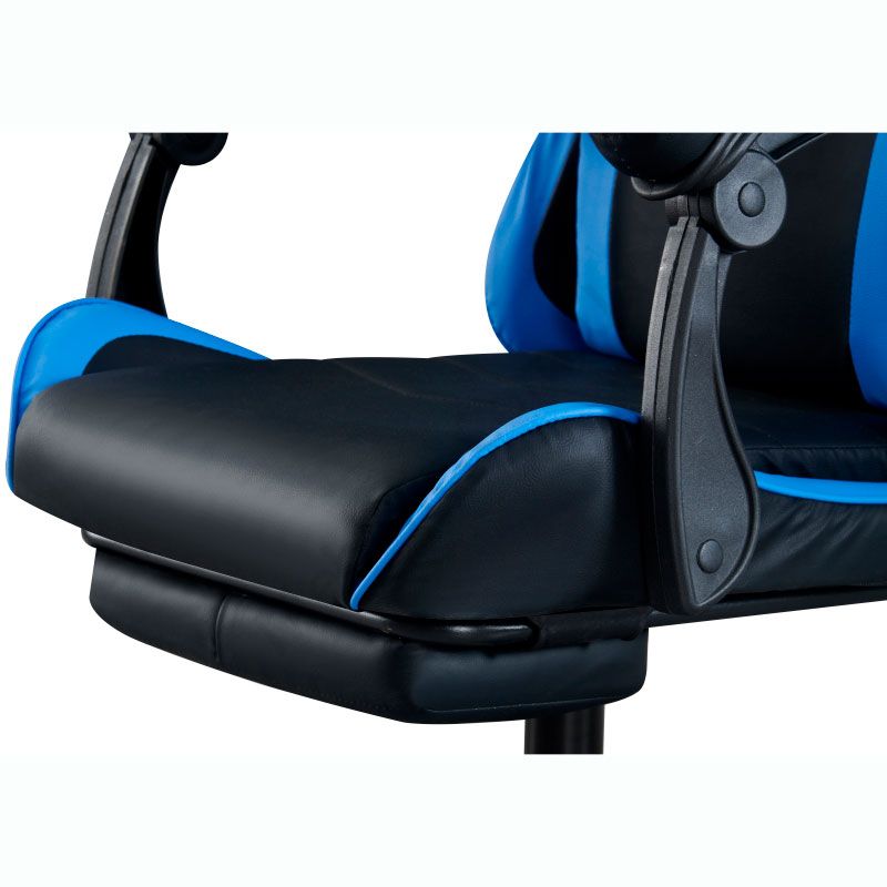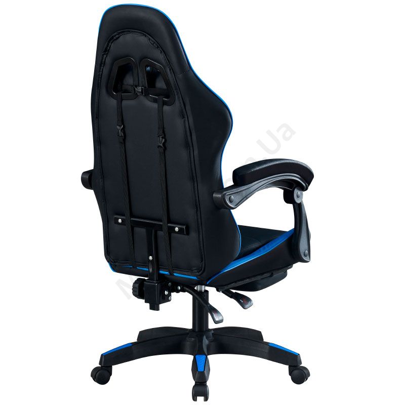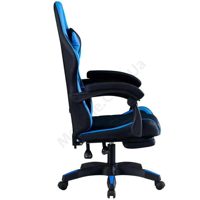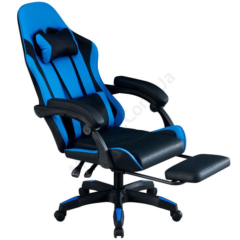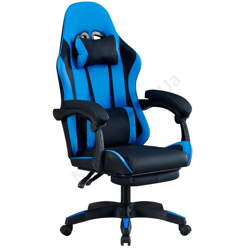 Комп’ютерне геймерське крісло з м’якими підлокітниками, підголівником та підставкою для ніг.