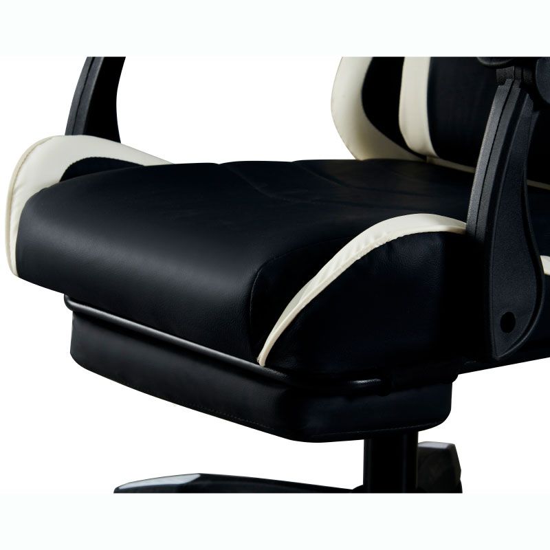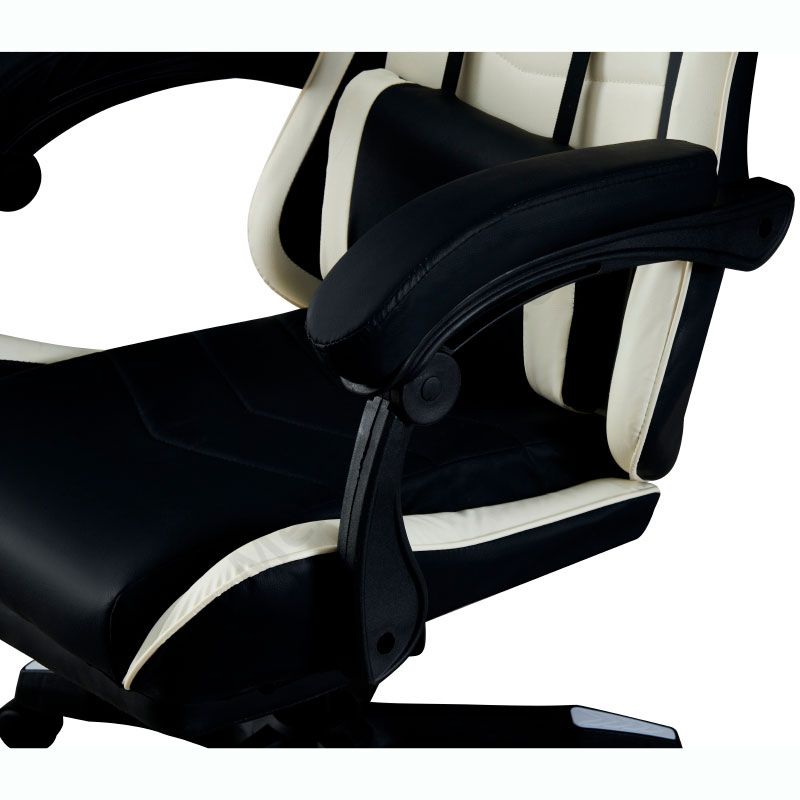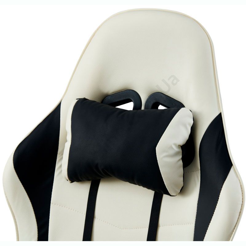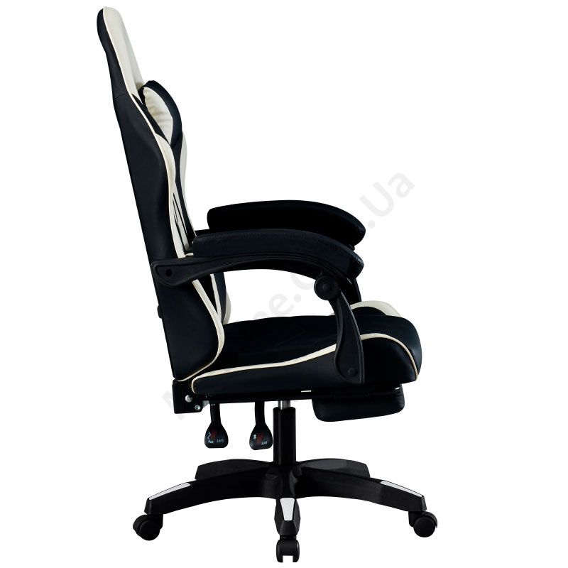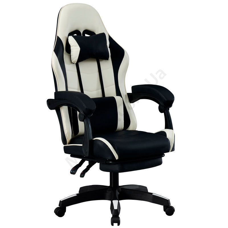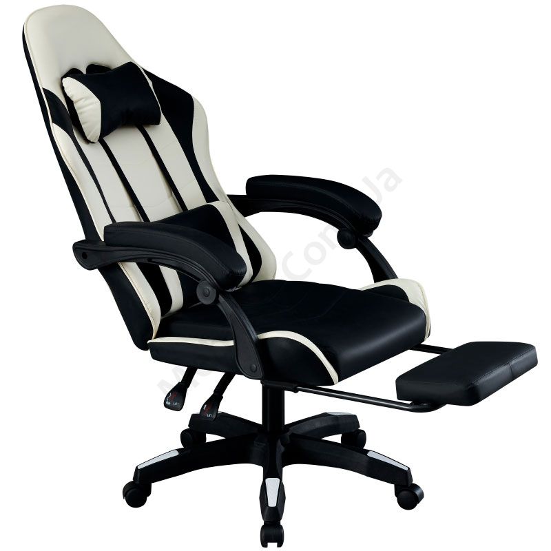 Комп’ютерне геймерське крісло з м’якими підлокітниками, підголівником та підставкою для ніг.