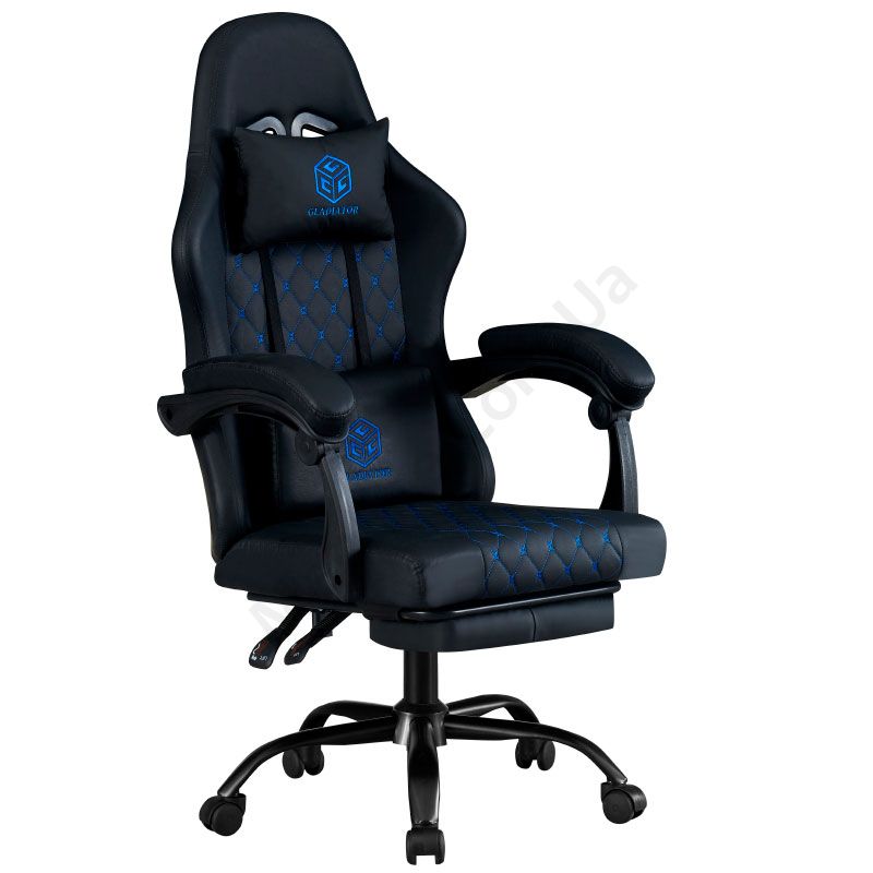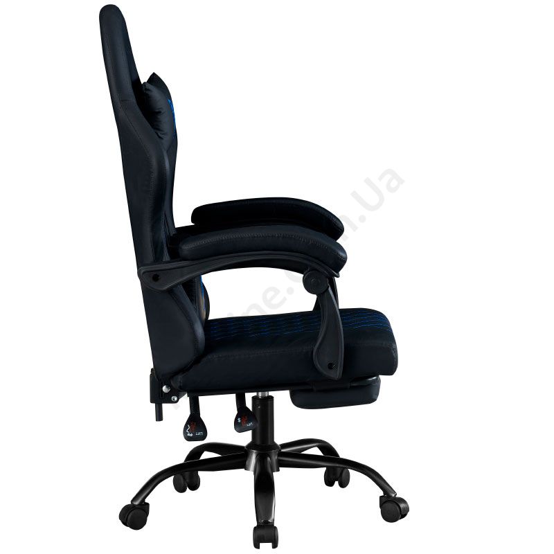 Комп’ютерне геймерське крісло з м’якими підлокітниками, підголівником та підставкою для ніг.