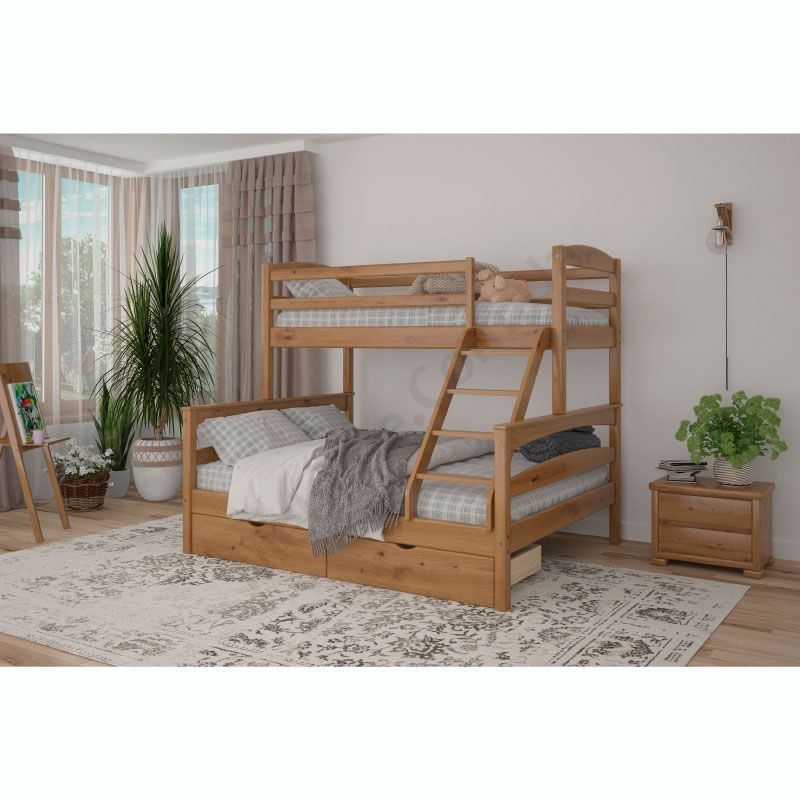 Дерев’яне трьохспальне ліжко на ніжках без задньої стінки.