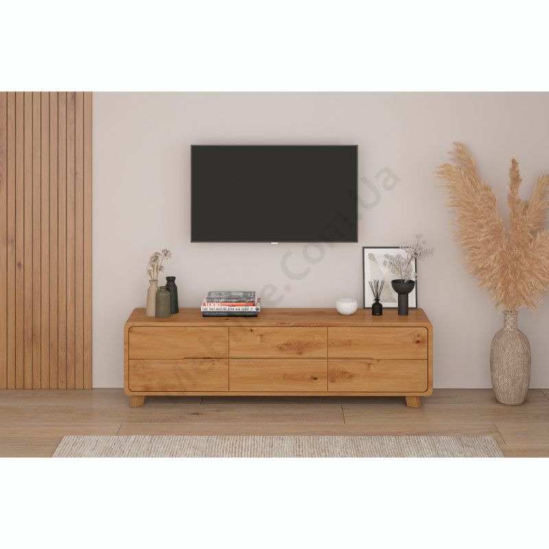 Дерев’яна тумба під телевізор на ніжках з висувними шухлядами.