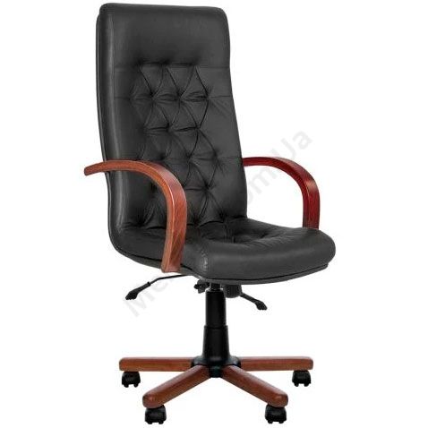 Крісло для керівника з ромбовидною прошивкою, дерев’яними підлокітниками, фіксацією у будь-якому положенні, на дерев’яній основі.