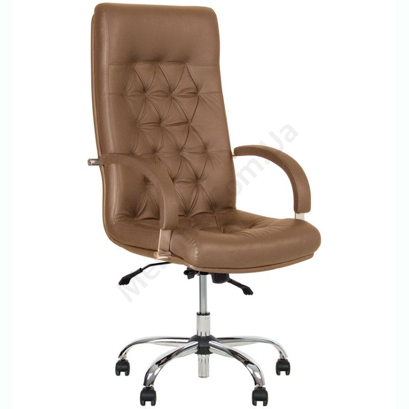 Крісло для керівника з ромбовидною прошивкою, м’якими підлокітниками, фіксацією у будь-якому положенні, на хромованій основі.