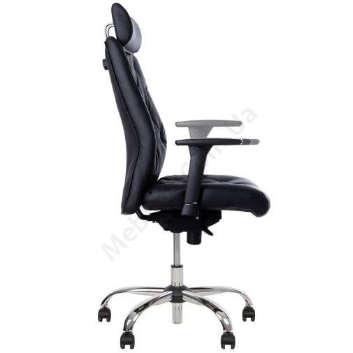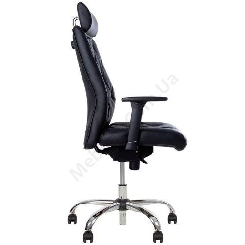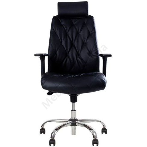 Крісло для керівника з ромбовидною прошивкою, 3D регульованими підлокітниками, регульованим підголівником, синхромеханізмом, фіксацією в 5 положеннях, на хромованій основі.