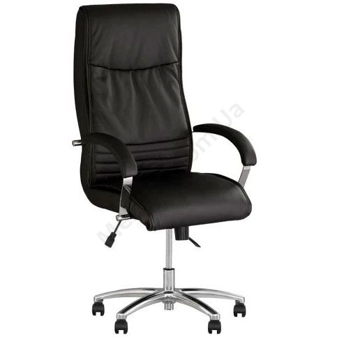 Крісло для керівника з лаконічним дизайном, м’якими підлокітниками, фіксацією у вертикальному положенні, на алюмінієвій основі.