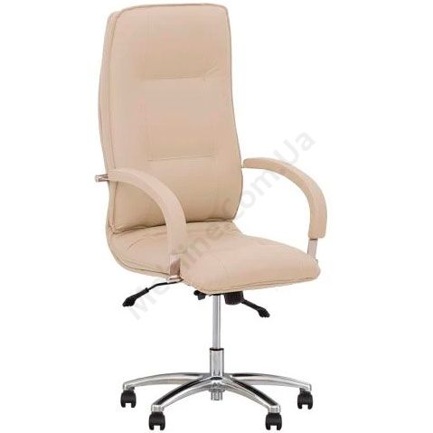 Крісло для керівника в мінімалістичному стилі, м’якими підлокітниками, фіксацією у будь-якому положенні, на алюмінієвій основі.