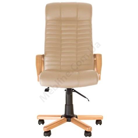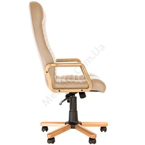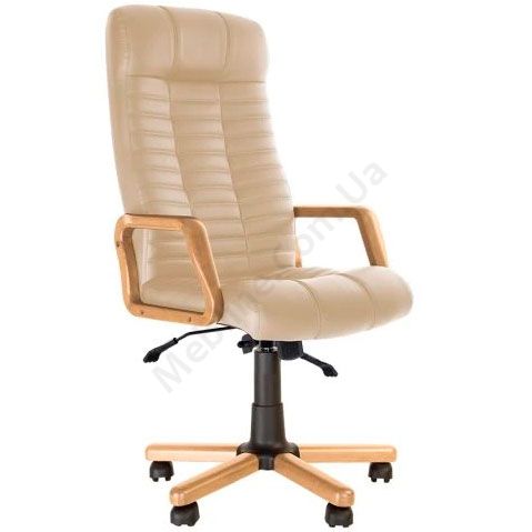 Крісло для керівника з рельєфною спинкою, дерев’яними підлокітниками, фіксацією у будь-якому положенні, на дерев’яній основі.
