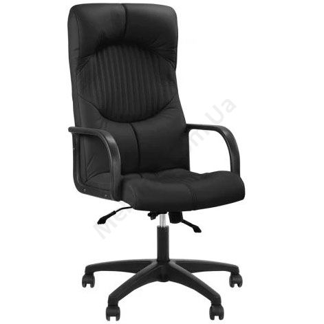Крісло для керівника з вираженою підтримкою шиї та попереку, роздільним каркасом, фіксацією у будь-якому положенні, пластиковими підлокітниками, на пластиковій основі.