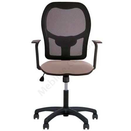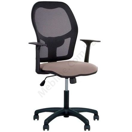 Зручне операторське крісло з дихаючою спинкою, регульованими пластиковими підлокітниками, фіксацією у вертикальному положенні, на пластиковій основі.