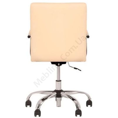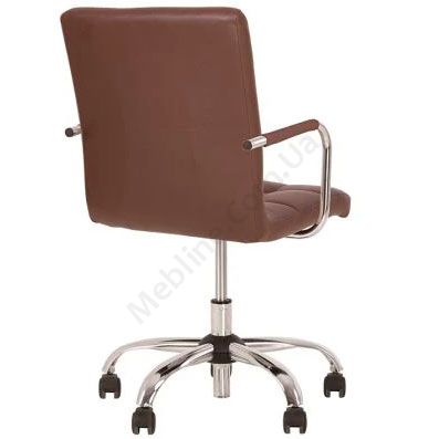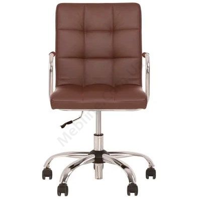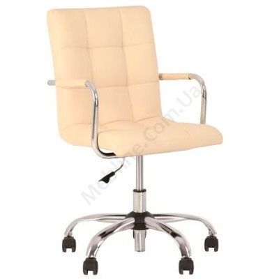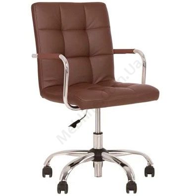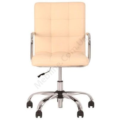 Компактне комп’ютерне крісло для домашнього офісу з підлокітниками на хромованій основі.