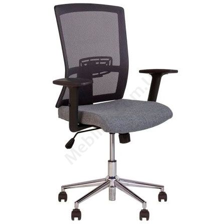 Ергономічне операторське крісло з дихаючою спинкою з регульованими пластиковими підлокітниками, фіксацією у вертикальному положенні, на хромованій основі.