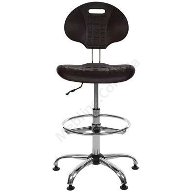 Високе крісло для медичних установ чи лабораторій з пластиковими сидінням та спинкою, без підлокітників, на хромованій основі.