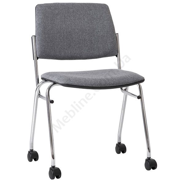 Стілець на роликах для відвідувачів та конференцій без підлокітників на хромованій рамі.