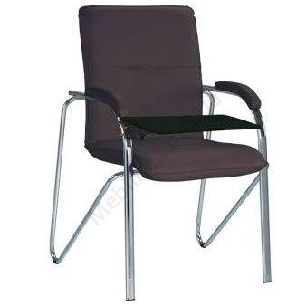 Крісло для конференцій в класичному стилі на хромованій базі з м’якими накладками на підлокітники та пластиковим столиком.