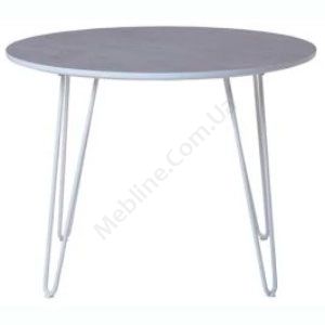 Круглий журнальний столик на металевих ніжках.