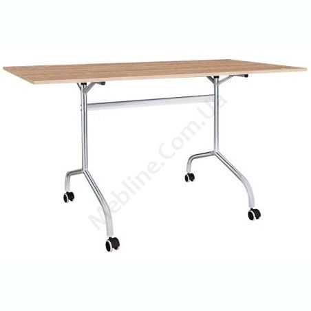 Розкладний кухонний стіл прямокутної форми на хромованих металевих ніжках роликах.