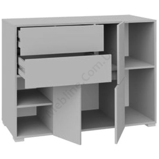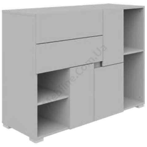 Тумба з дверцятами, висувними шухлядами та відкритими полицями.