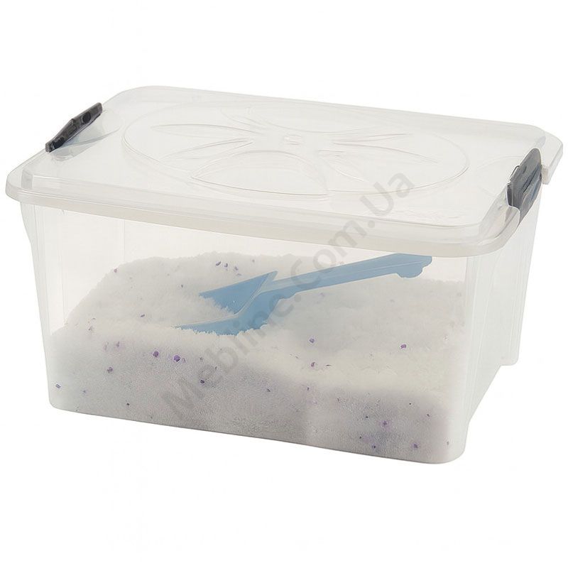 Прямокутний контейнер із прозорого пластику з кришкою для зберігання речей.