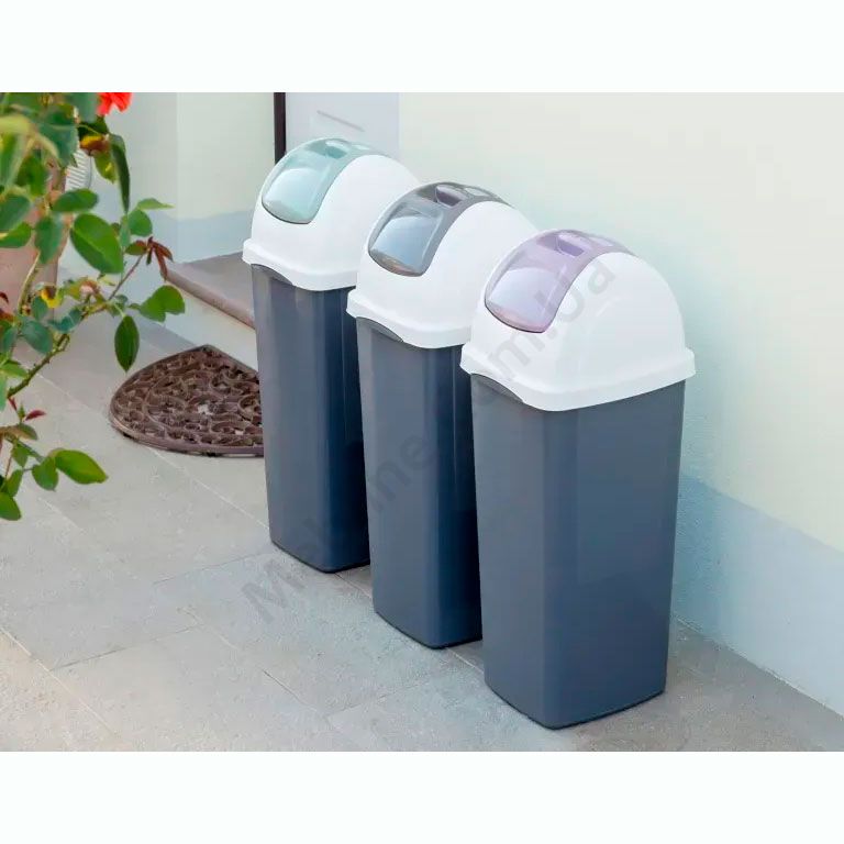 Пластиковий контейнер для сміття на 65 л з кольоровою кришкою.