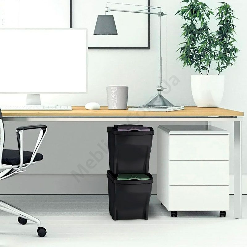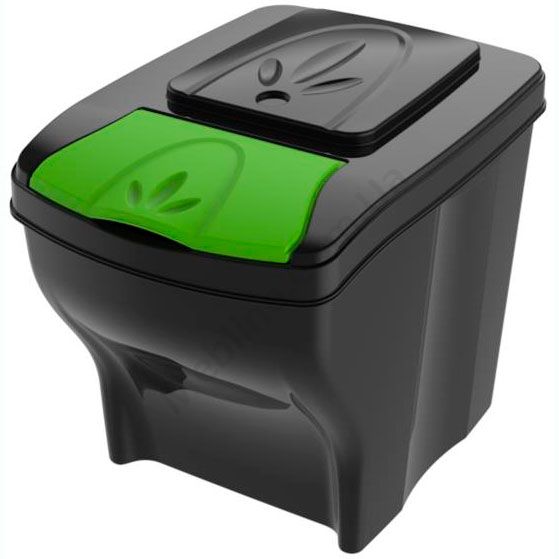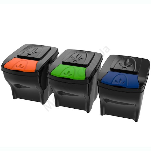 - Відкидна кришка в одному з трьох кольорів для ідентифікації типу сортованого сміття.