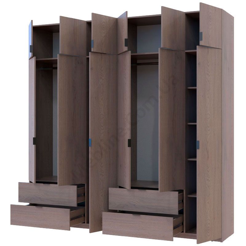Розпашна шестидверна шафа з висувними шухлядами та антресолями.