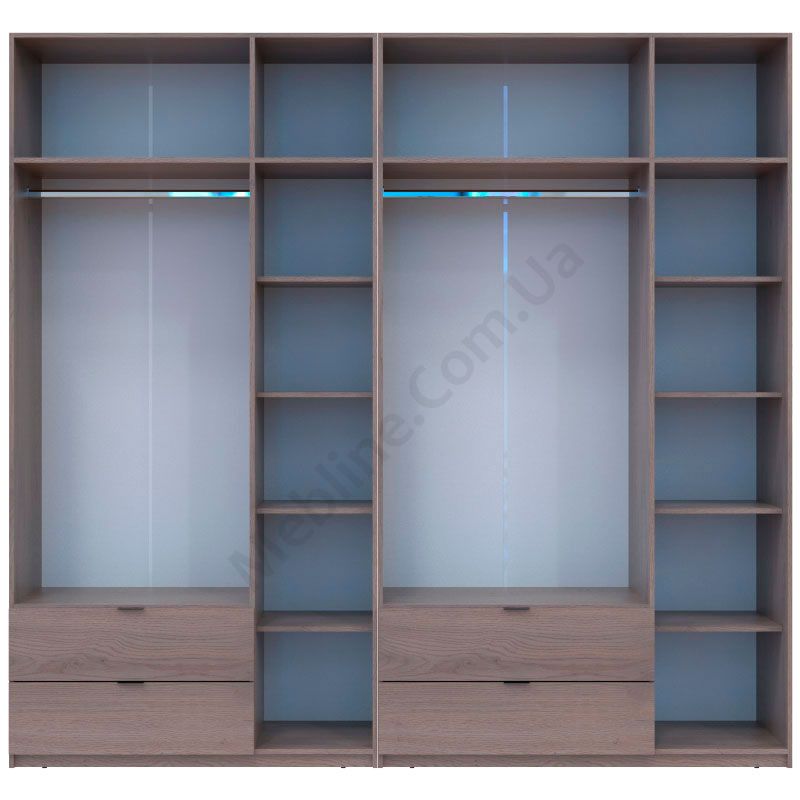 - За чотирма дверцятами по штанзі для одягу.