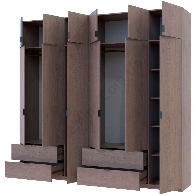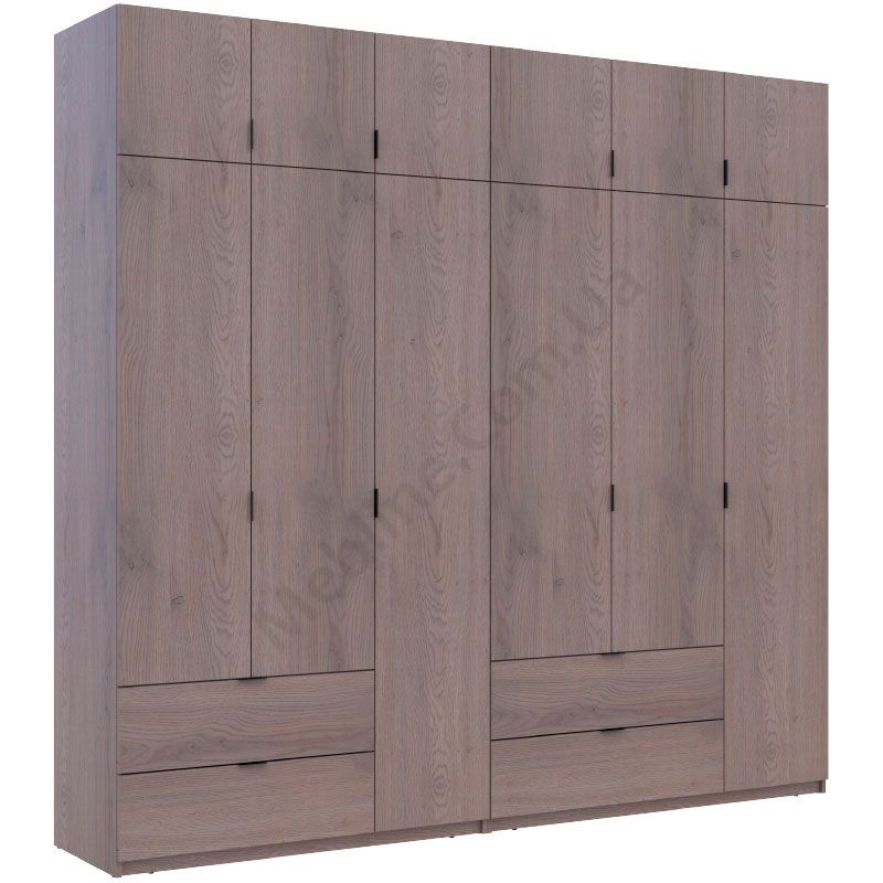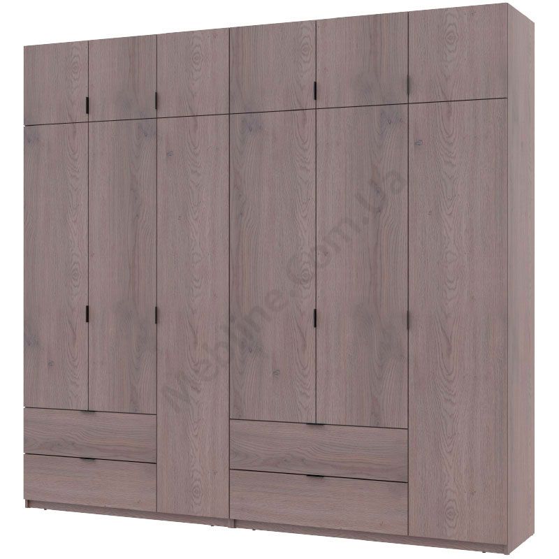 Розпашна шестидверна шафа з висувними шухлядами та антресолями.