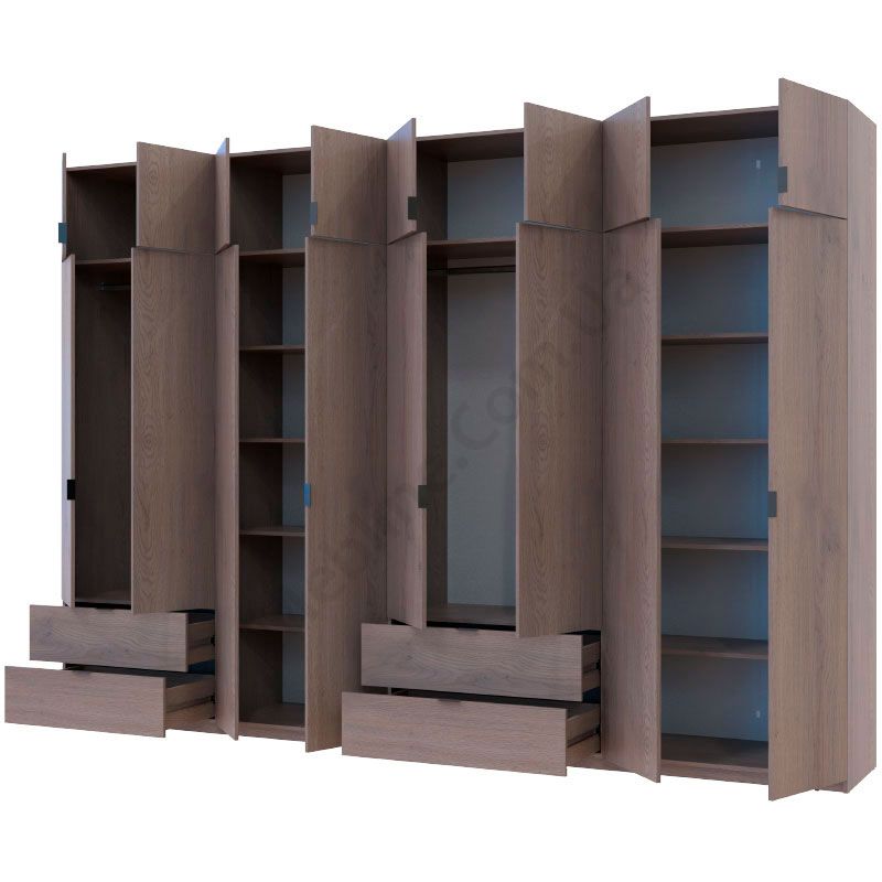 Розпашна восьмидверна шафа з висувними шухлядами та антресолями.