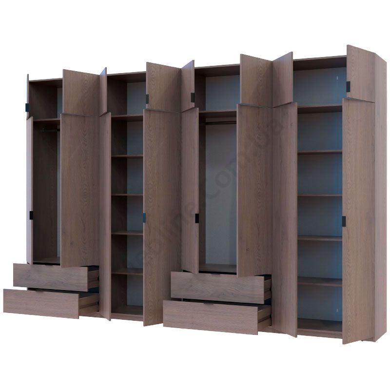 Розпашна восьмидверна шафа з висувними шухлядами та антресолями.